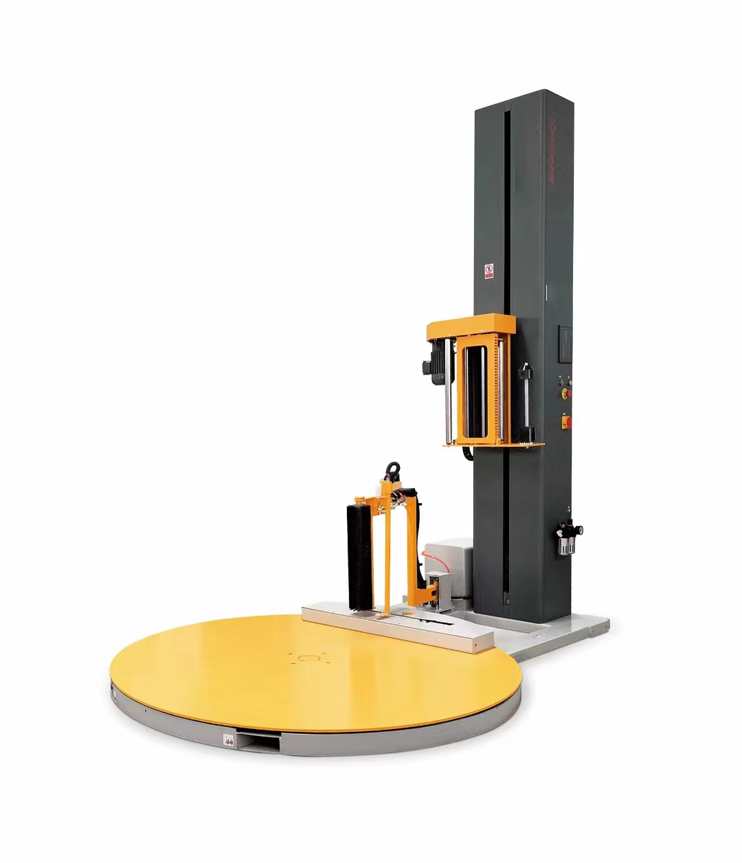 - 控制系统:PLC控制,触摸屏显示,缠绕层数,次数可调,转台自动复位,自动感测货物高度。